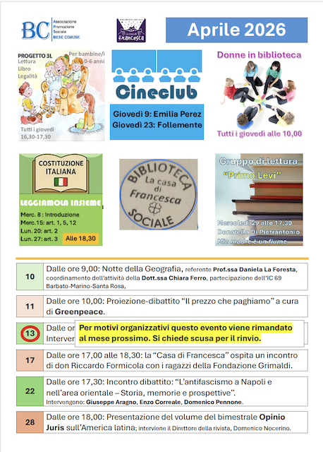 Dal mese di marzo 2025, la biblioteca sociale La Casa di Francesca garantisce per gli studenti iscritti ai corsi di laurea offerti dall’Università degli Studi di Napoli Federico II° (ad esclusione di psicologia, medicina e veterinaria) la possibilità di svolgere attività di tirocinio curriculare presso i suoi spazi.