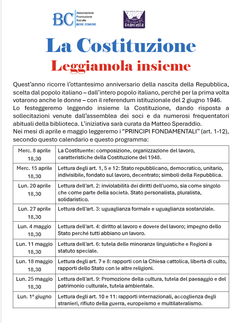 LEGGIAMO INSIEME LA COSTITUZIONE a cura di Matteo Speraddio